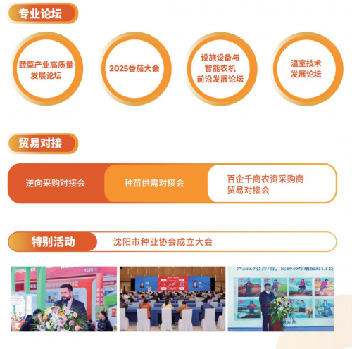 2025沈阳种业博览会暨北方设施农业博览会将于2025年10月13日至14日在沈阳盛大召开,同期举办蔬菜田间展示会,另在9月10日至16日举办大田田间展示会。本届展会以“种业创‘芯’·‘籽’引未来”为主题,汇聚国内外种业、设施农业、农业科技等领域的顶尖企业、科研机构和行业专家,致力于为科研单位、企业、经销商和种植户搭建一个高效、专业的交流合作平台。