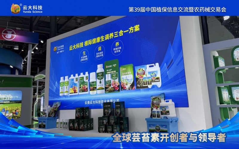 云大科技还重点展出了特种药肥系列产品。作为全国最早布局植调药肥登记证件的企业,公司自2001年便将28-表高芸苔素内酯应用于特种药肥,近年来持续创新,完成了植调剂、杀菌剂、杀虫剂等特种药肥的证件布局,致力于构建健康可持续的农业生态体系。